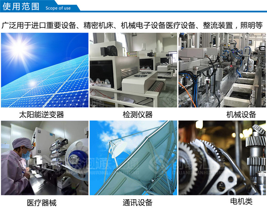 該系列隔離變壓器廣泛用于地鐵、高層建筑、機場、車站、印刷、機床、碼頭、光伏發(fā)電設(shè)備,逆變器專用,工礦企業(yè)及隧道的輸配電及進口設(shè)備的使用等場所