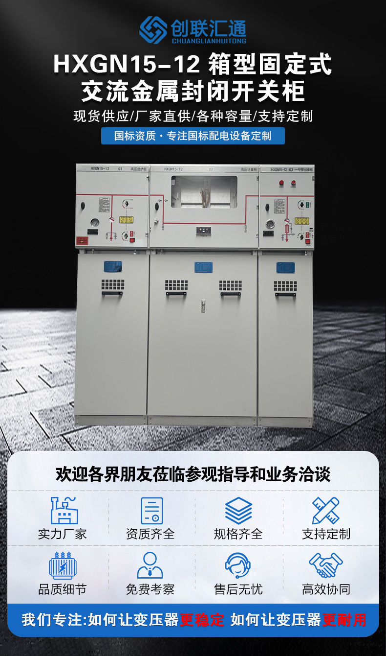 HXGN15系列是新一代以六氟化硫開(kāi)關(guān)(SF6)作為主開(kāi)關(guān)而整柜采用空氣絕緣、適用于配電自動(dòng)化,既緊湊又可擴(kuò)充的金屬封閉開(kāi)關(guān)設(shè)備。具有結(jié)構(gòu)簡(jiǎn)單、操作靈活、聯(lián)鎖可靠、安裝方便等特點(diǎn),對(duì)各種不同的應(yīng)用場(chǎng)合、不同的用戶要求均能提供令人滿意的技術(shù)方案。