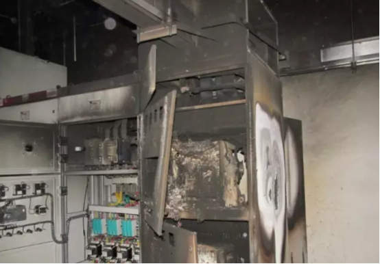 安裝在變電站和小區(qū)配電室內(nèi)的干式變壓器,因環(huán)境封閉,通風(fēng)散熱條件差,容易因設(shè)備過(guò)發(fā)生熱火災(zāi)。同時(shí)在一個(gè)密閉的空間,火災(zāi)發(fā)生后產(chǎn)生的濃煙使柜內(nèi)空氣絕緣水平降低,母線(xiàn)對(duì)開(kāi)關(guān)柜體放電,造成母線(xiàn)相間短路,進(jìn)而發(fā)展為主變低壓側(cè)開(kāi)關(guān)跳閘,10kV 母線(xiàn)失壓、干變及開(kāi)關(guān)柜燒毀的事件。