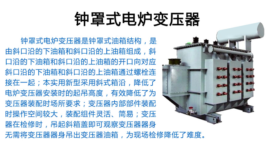 電爐變壓器斜鐘罩式油箱結(jié)構(gòu),是由斜口沿的下油箱和斜口沿的上油箱組成,斜口沿的下油箱和斜口沿的上油箱的開口向?qū)?yīng),斜口沿的下油箱和斜口沿的上油箱通過螺栓連接在一起;本實(shí)用新型采用斜式箱沿,降低了電爐變壓器安裝時的起吊高度,有效降低了為變壓器裝配時場所要求;變壓器內(nèi)部部件裝配時操作空間較大,裝配組件靈活、簡易;變壓器在檢修時,吊起斜箱蓋即可觀察變壓器器身,無需將變壓器器身吊出變壓器油箱,為現(xiàn)場檢修降低了難度。