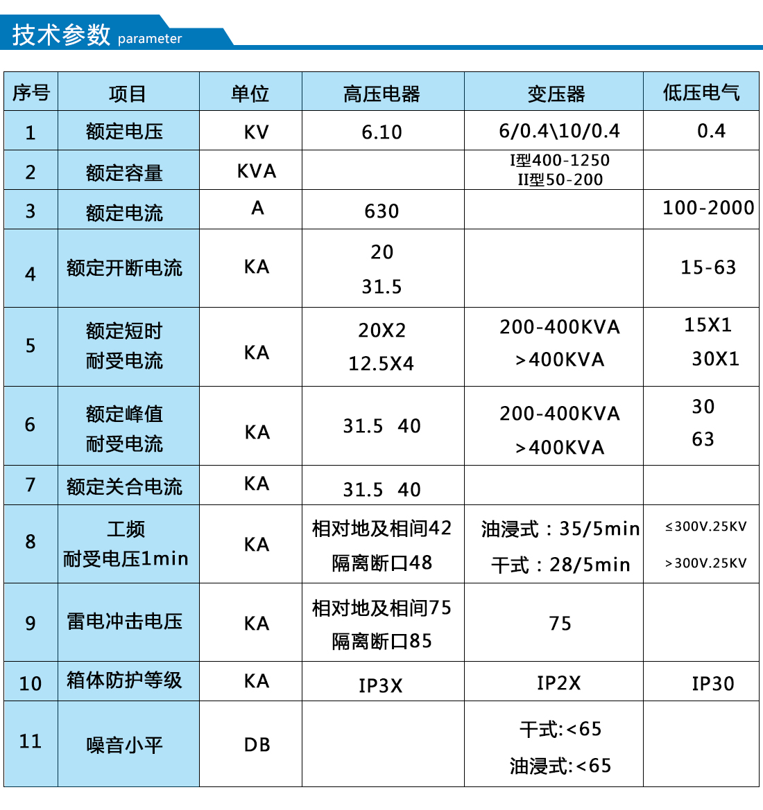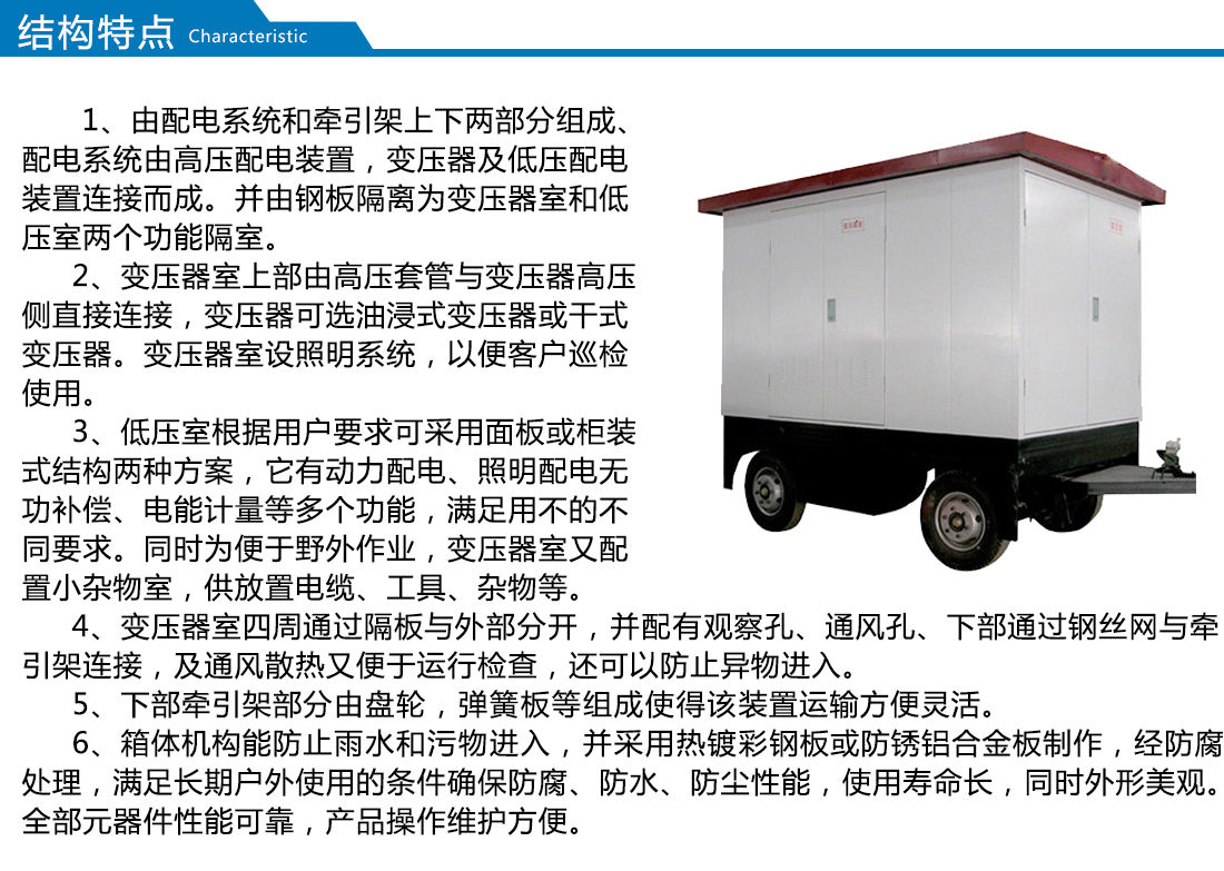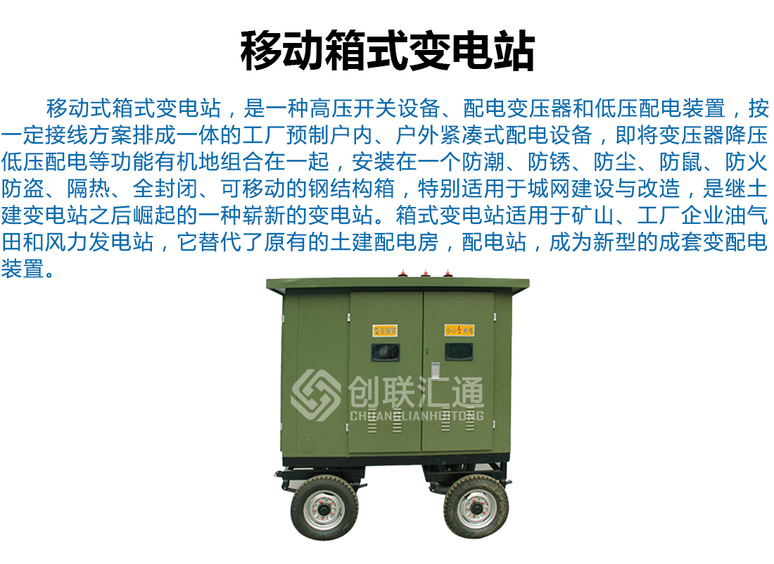 移動(dòng)式箱式變電站適用于住宅小區(qū)、城市公用變、繁華鬧市、施工電源等,用戶可根據(jù)不同的使用條件、負(fù)荷等級(jí)選擇箱式變。